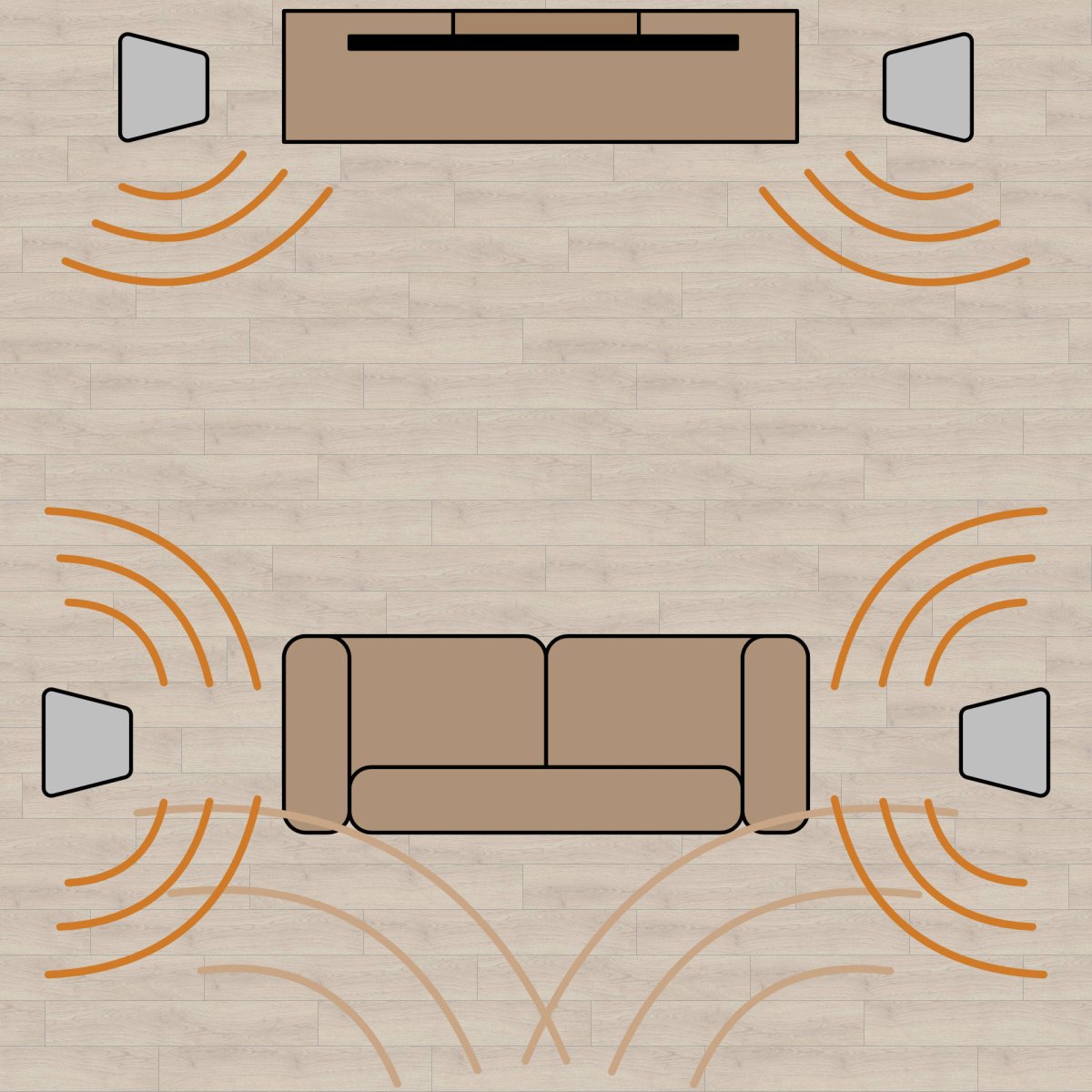 Heimkino: Diese Rundum-Abstrahlung sorgt für eine homogene Klangbühne, die den Übergang zu den Surround-Kanälen des NAD-Verstärkers extrem fliessend gestaltet.
